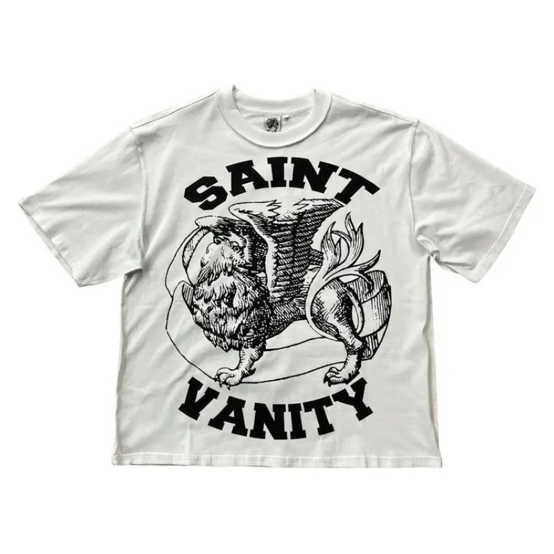 The White Saint Vanity Classic Logo Griffin T-Shirt pairs effortlessly with jeans, shorts, or layered jackets for a bold streetwear look. With Saint Vanity Clothing, you can mix and match sneakers, accessories, and hats to create standout outfits. Its relaxed fit makes it easy to layer with hoodies or overshirts for added style. Perfect for casual days or making a statement, this tee adapts to any trendy outfit combination.